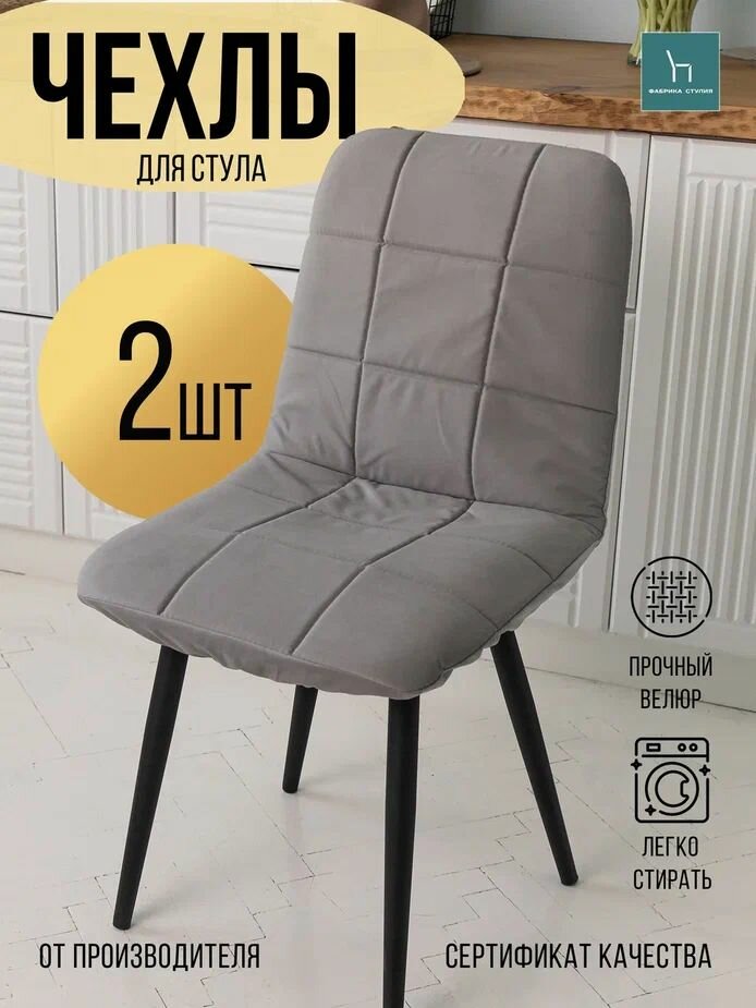 Отзывы на Чехол для мебели Чили из велюра, серый прострочка квадрат 2 шт
