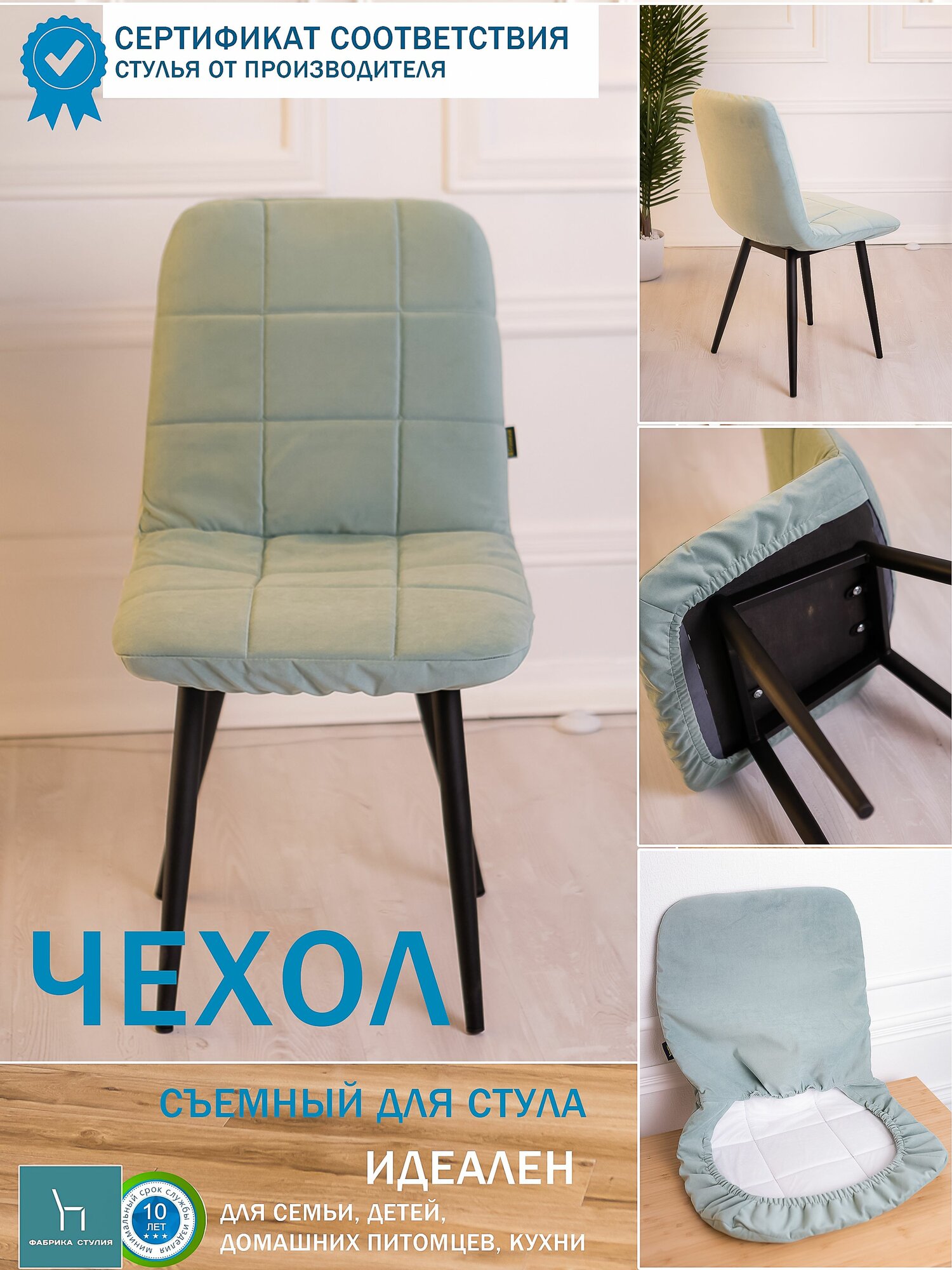 Отзывы на Комплект чехлов на стул со спинкой Тедди из велюра, мятный, прострочка квадрат, 2 шт