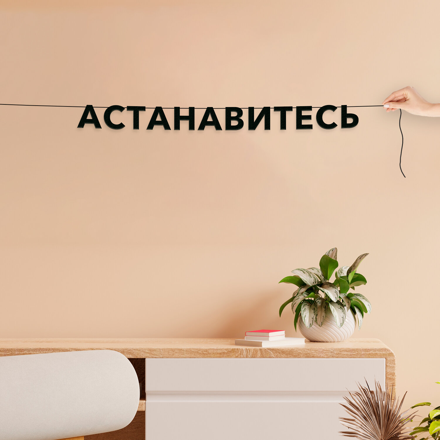 Отзывы на Гирлянда из букв, Мемы интерьерная - “Астанавитесь“, черная текстовая растяжка.