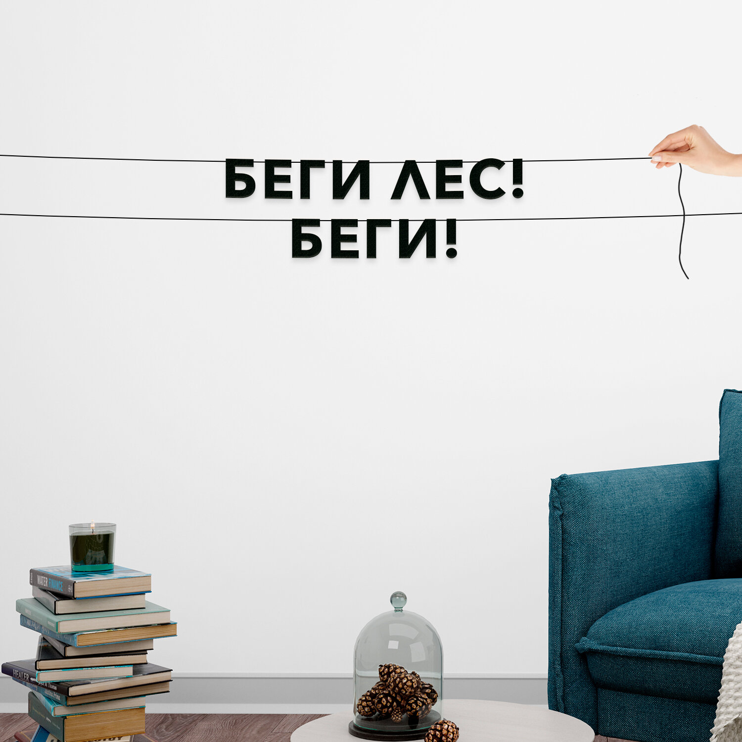 Гирлянда растяжка, Мемы - “Беги лес! Беги!“, черная текстовая растяжка. информация:
