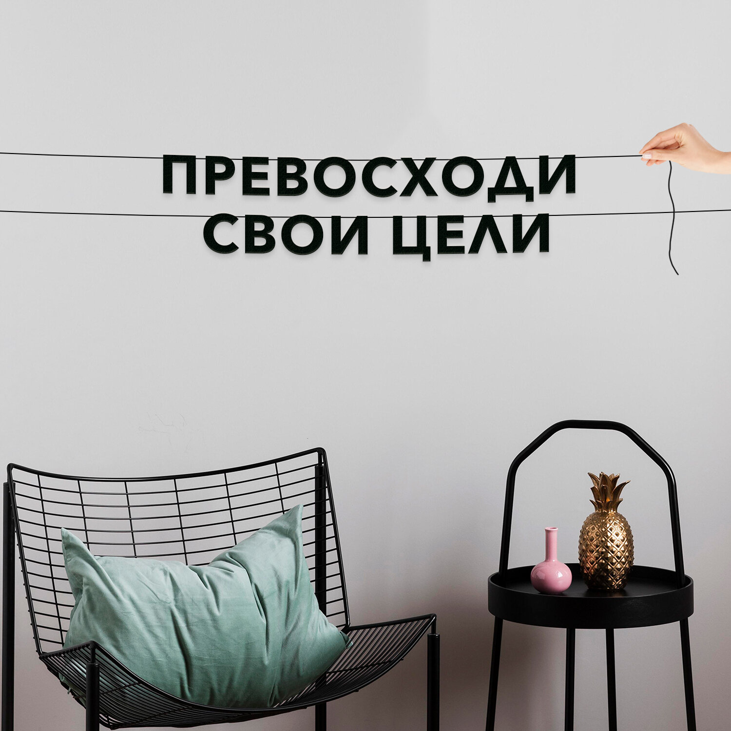 Отзывы на Декор интерьерный черные буквы, для менеджеров по продажам - “Превосходи свои цели“, черная текстовая растяжка.