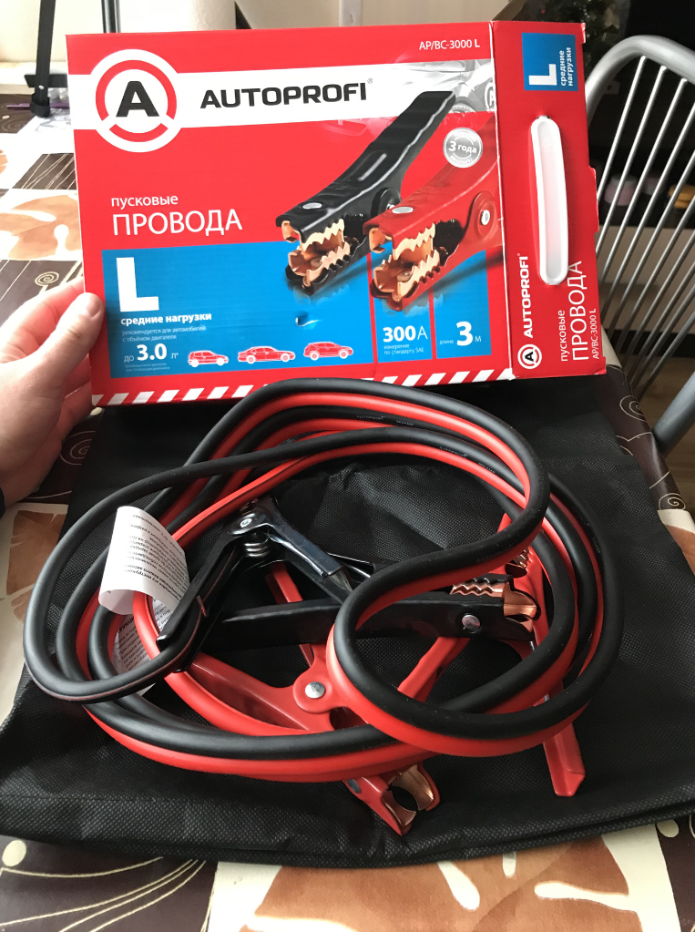 Отзывы на Провода пусковые "AUTOPROFI" AP/BC - 3000 L средние нагрузки, 100% ССА, 13.3мм2, 300A, 3м