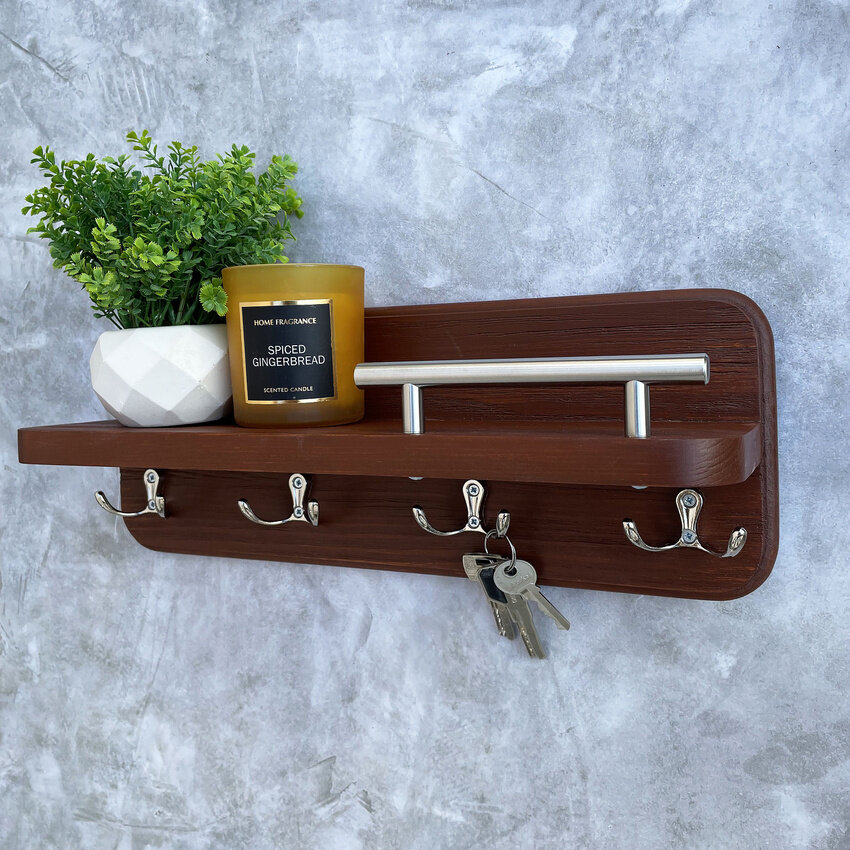 Деревянная полка ключница настенная с крючками для ключей в прихожую