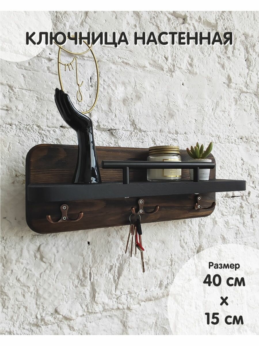 Полка настенная с крючками черная Ключница на стену деревянная Вешалка для ключей 1 650 ₽