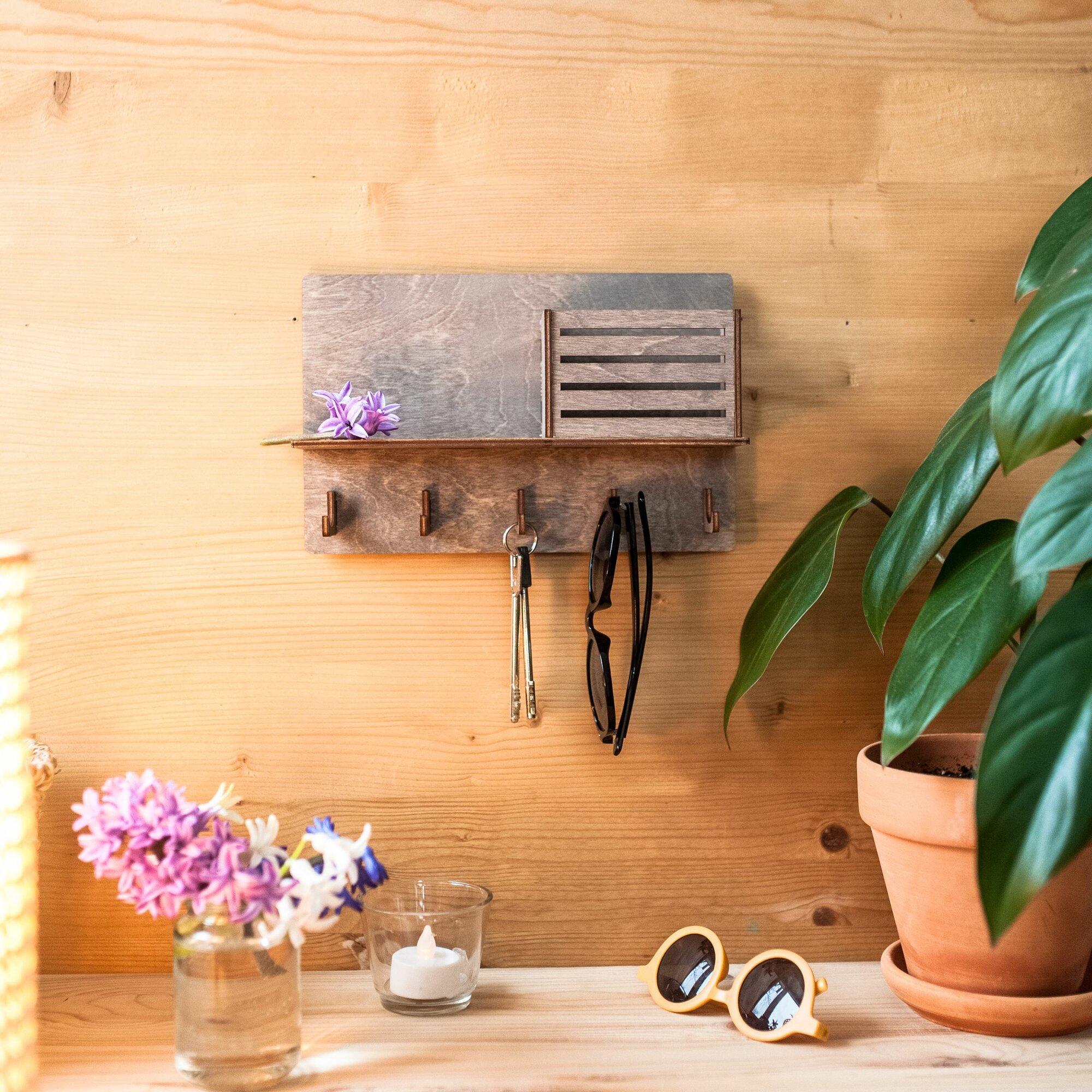 Деревянная ключница магнитная в скандинавском стиле Хюгге. 1 сильный магнит, легкая установка.