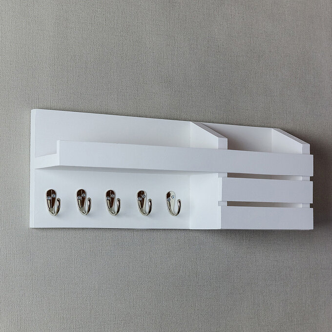 10 цен на "Ключница Chiwoodo" - белая настенная ключница из дерева с полкой и органайзером