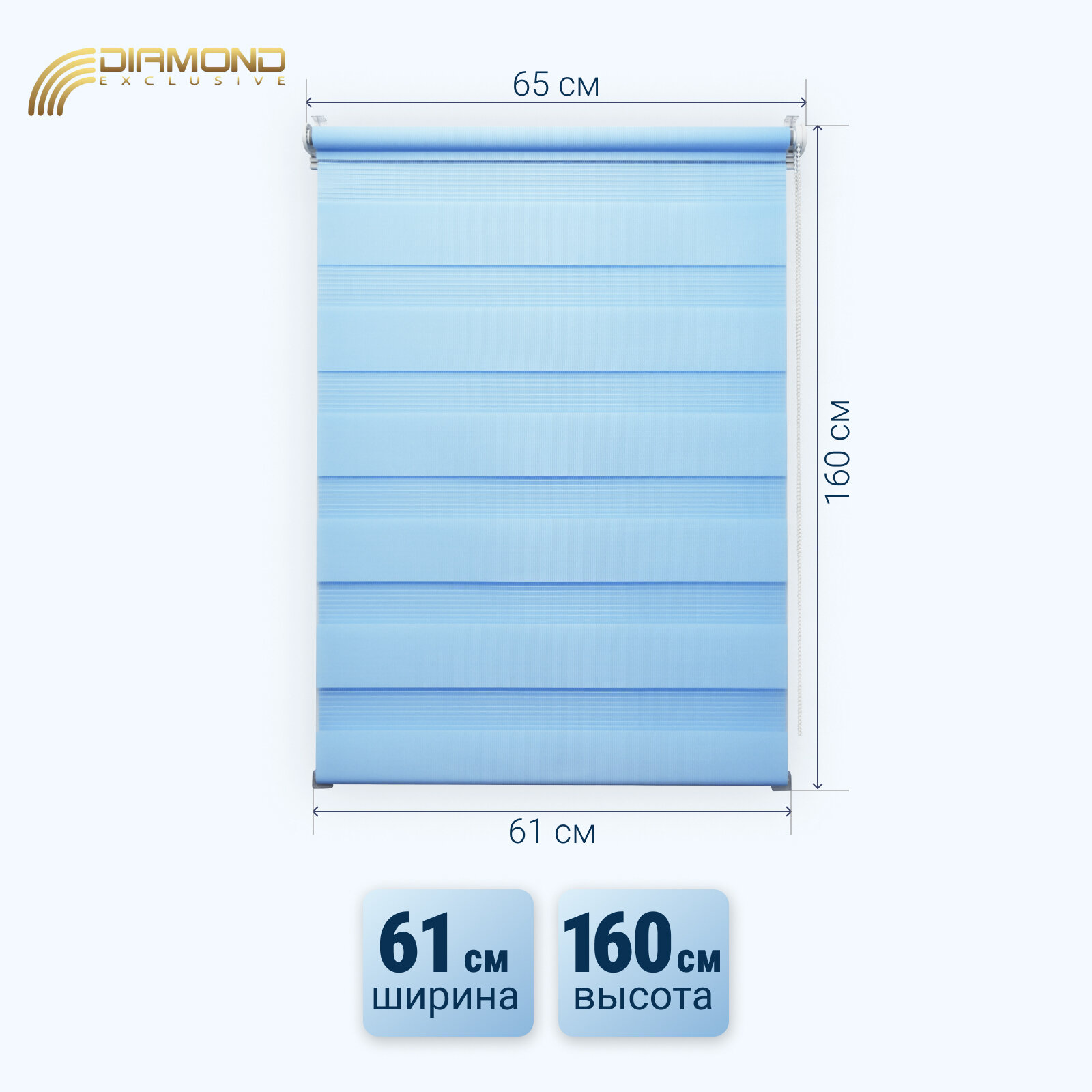 Рулонная штора с эффектом "день-ночь" 61х160 см, цвет голубой информация: