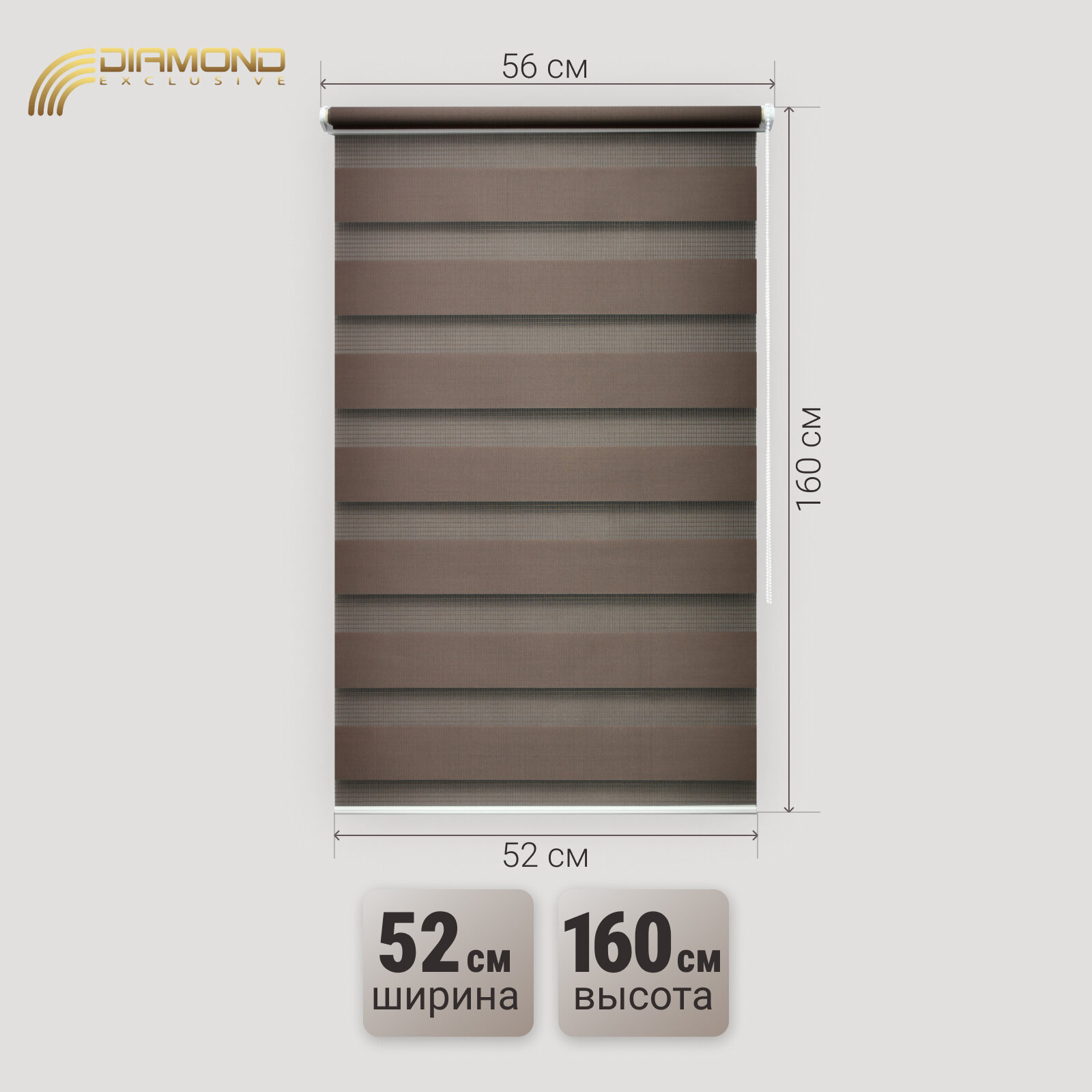 Рулонная штора с эффектом "день-ночь" Сандра 52х160 см, темно-коричневая информация: