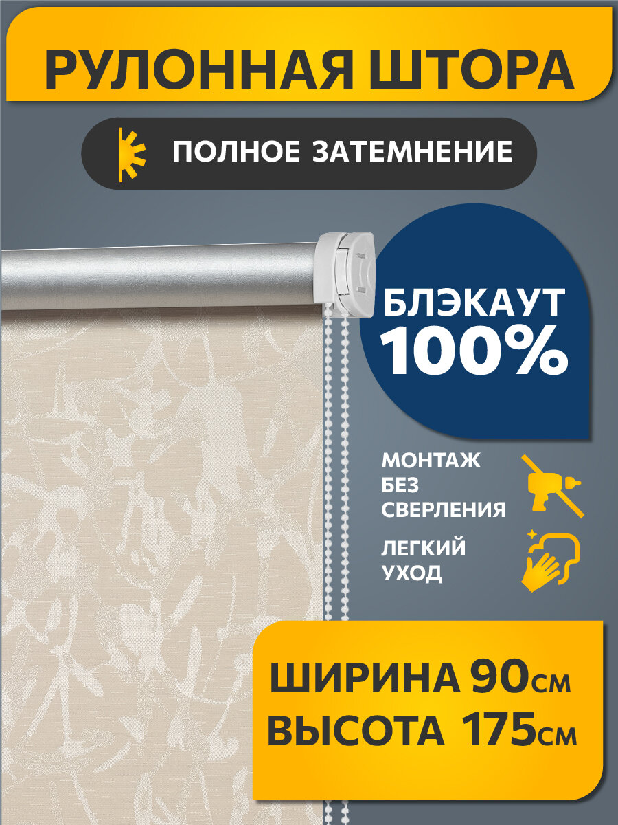 10 цен на Рулонные шторы блэкаут Муар Бежевый DECOFEST 90 см на 175 см, жалюзи на окна