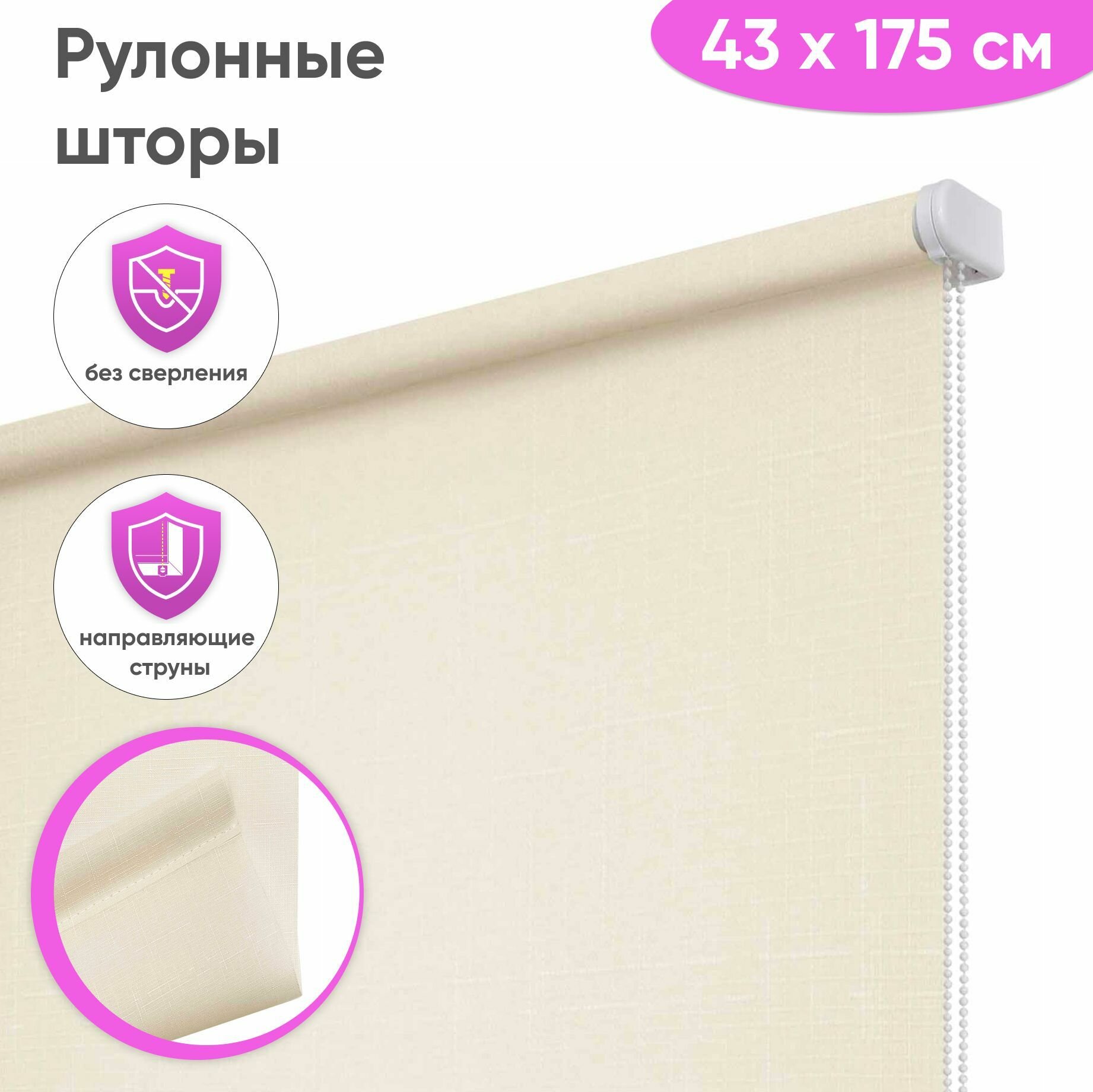 Рулонные шторы на окна 61 х 175 см Лен кремовый - Жалюзи на кухню и в детскую 1 283 ₽