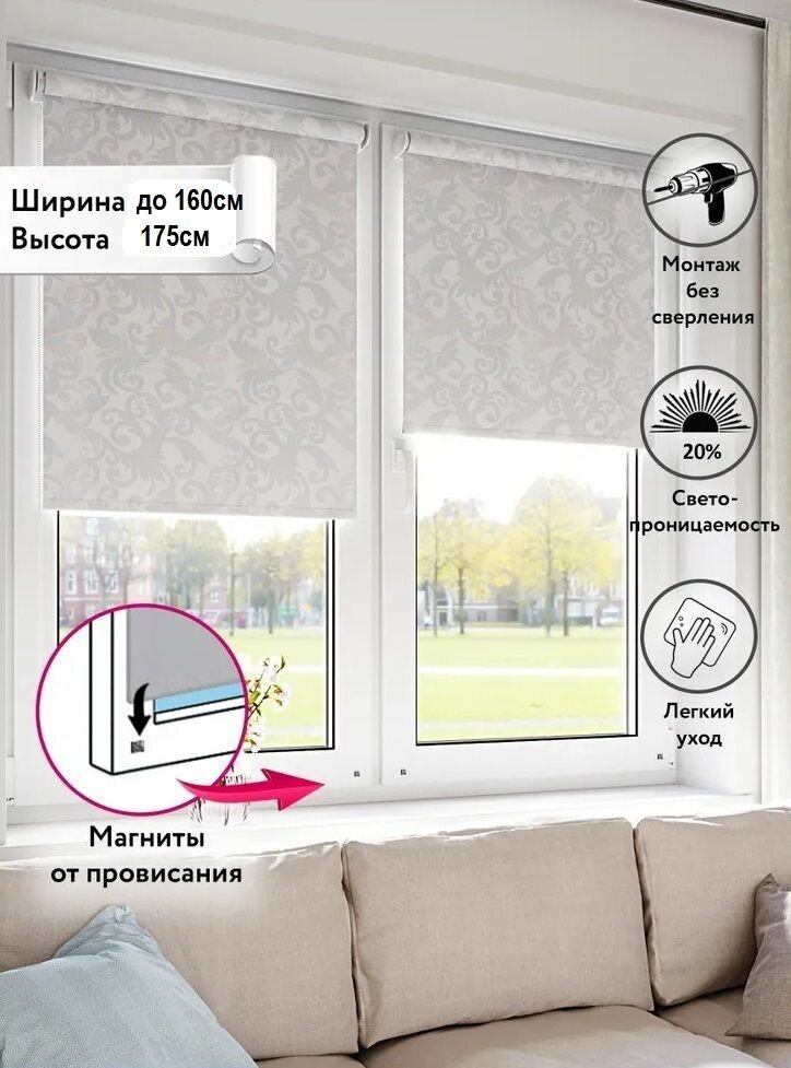 Рулонная штора LEGRAND севилия 52 на 175 серебро / Рулонные шторы на окна не блэкаут / Жалюзи на окна / Шторы не блэкаут 1 067 ₽