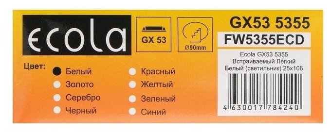 Ecola GX53 5355 Встраиваемый Легкий Белый (светильник) 25x106 информация:
