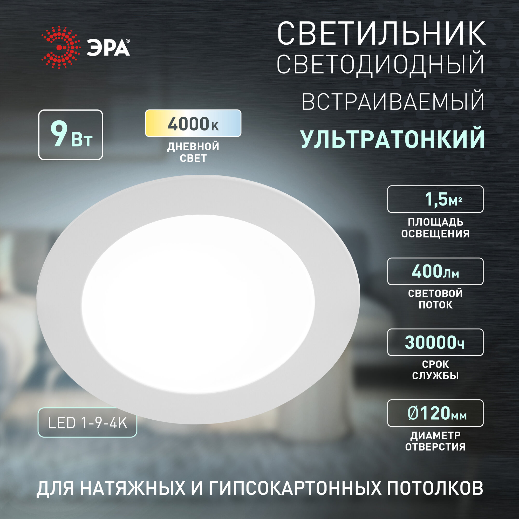 Встраиваемый светильник ЭРА LED 1-9-4K, 9 Вт