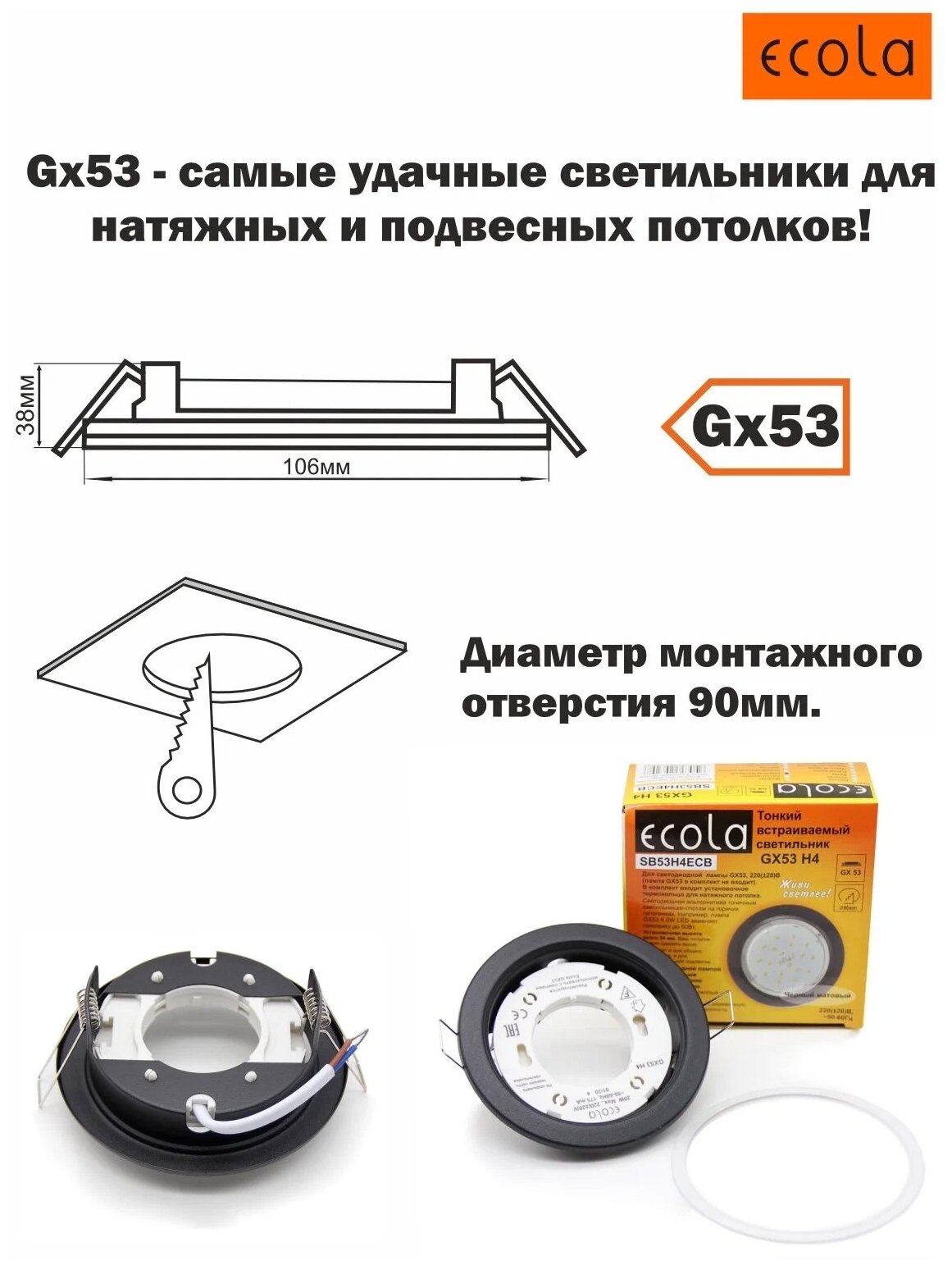 Отзывы на (5 шт.) Светильник встраиваемый Ecola GX53 H4 Черный матовый 38x106 SB53H4ECB