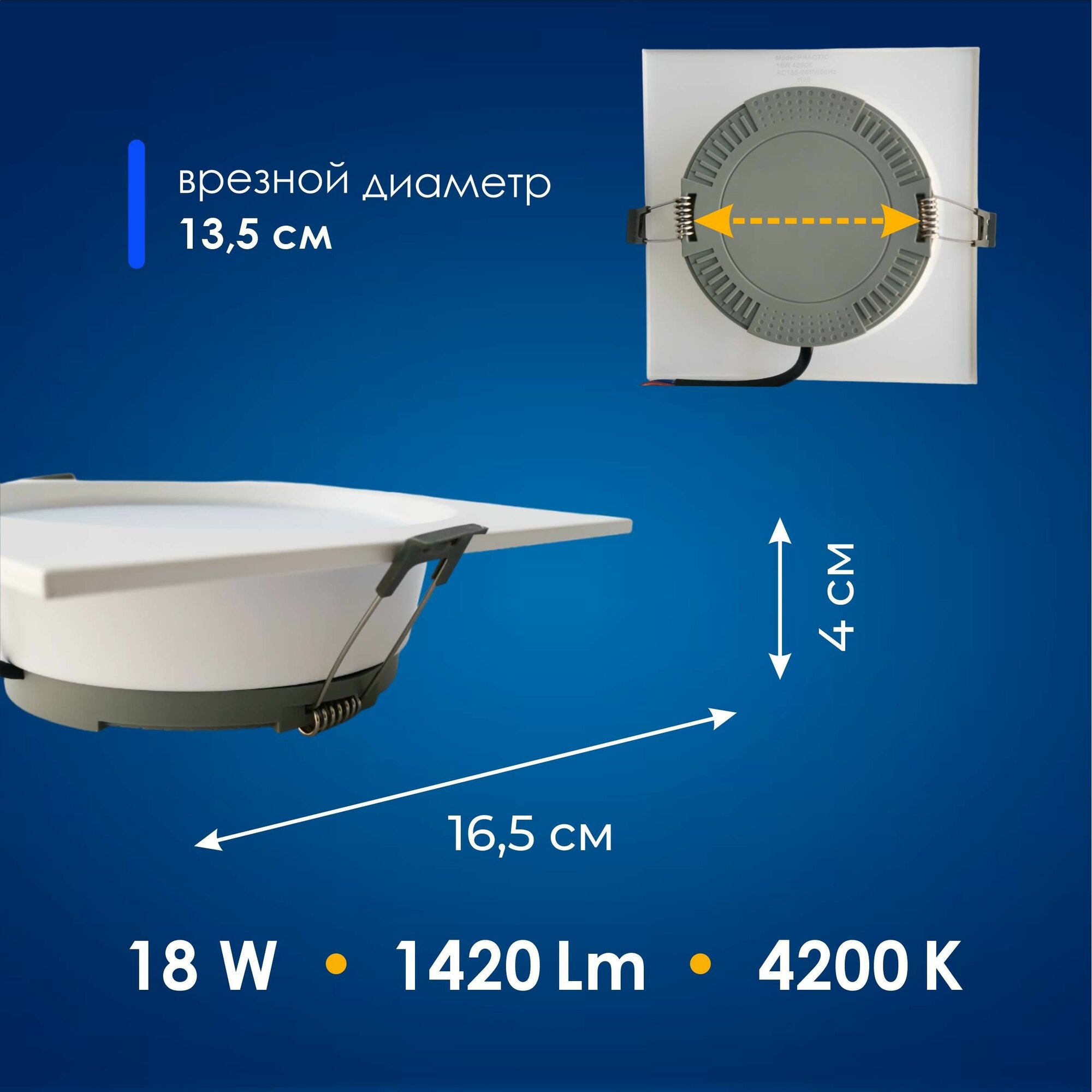 Встраиваемый светильник EKS PRACTIC - Светодиодная панель, LED панель в белом корпусе (18 Вт, 1420Лм, 4200К), 1 шт. информация: