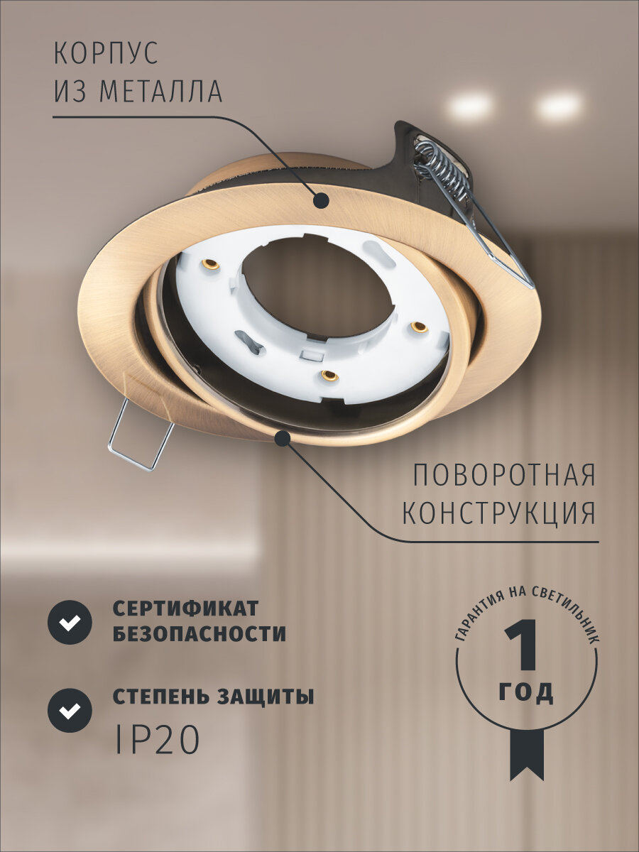 Светильник поворотный Navigator 93 031 для ламп с цоколем GX53, золото 319 ₽