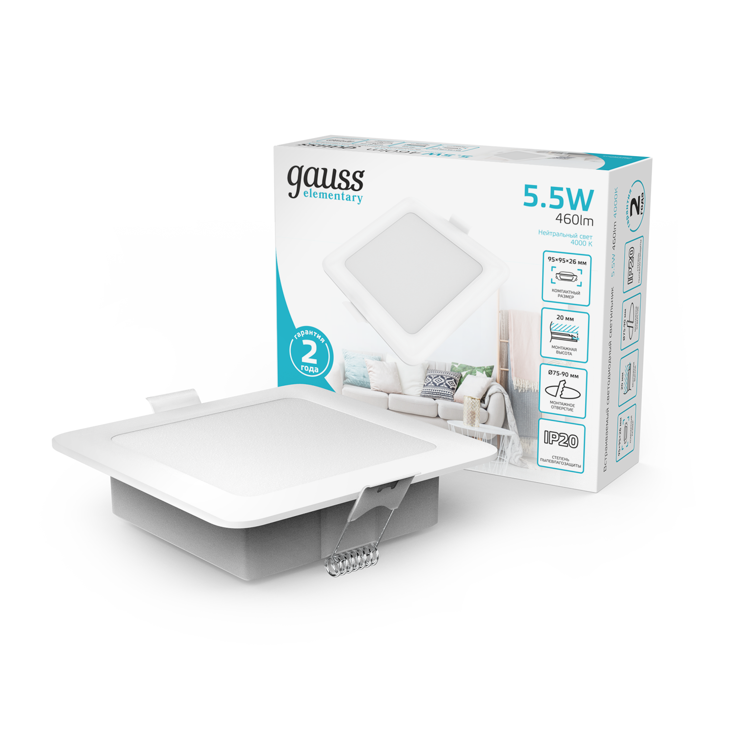 Отзывы на Светильник потолочный встраиваемый Downlight квадр 5,5W 4000K 220V IP20 95*26 белый Gauss