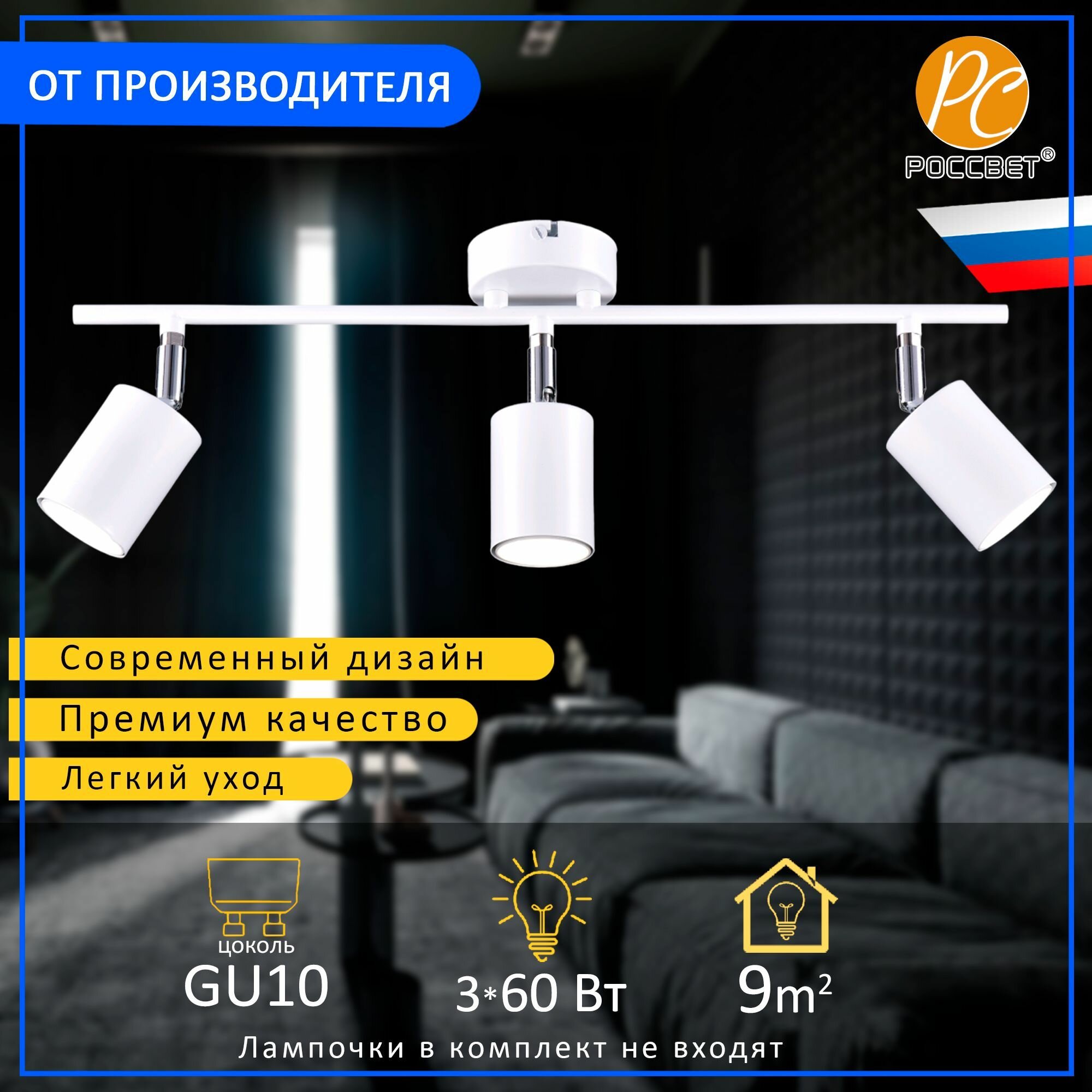 Отзывы на Светильник потолочный, спот РОССВЕТ РС21863 WT+CR/3C, 3*GU10 60 Вт