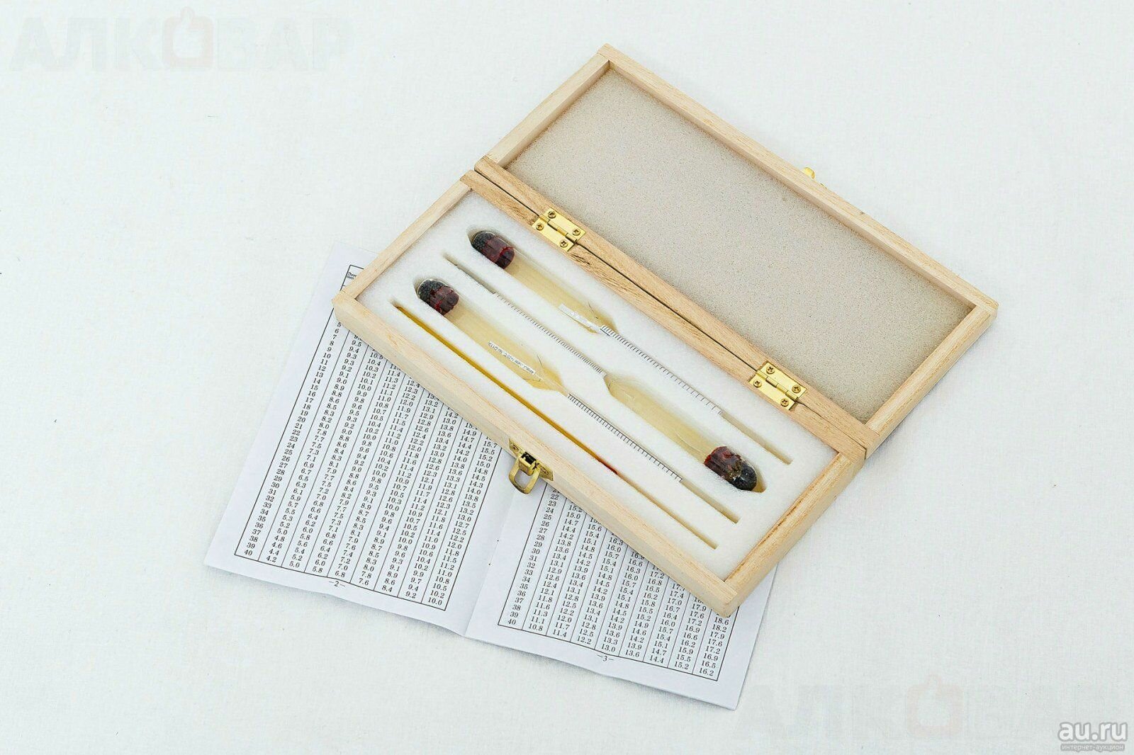 Набор спиртометров в деревянном футляре АСП-3 0-40%, 40-70%, 70-100% + Термометр ГОСТ 18481-81. Спиртометр, Ареометр информация: