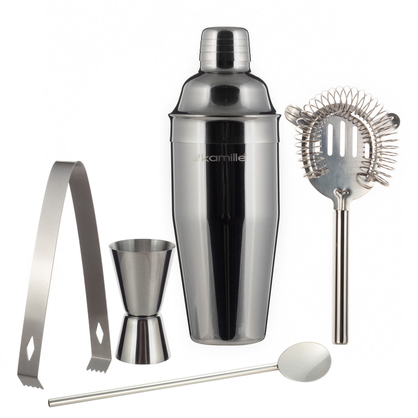 Набор бармена 5 предметов Kamille KM 7764 для приготовления коктейлей (7764 / серебристый)