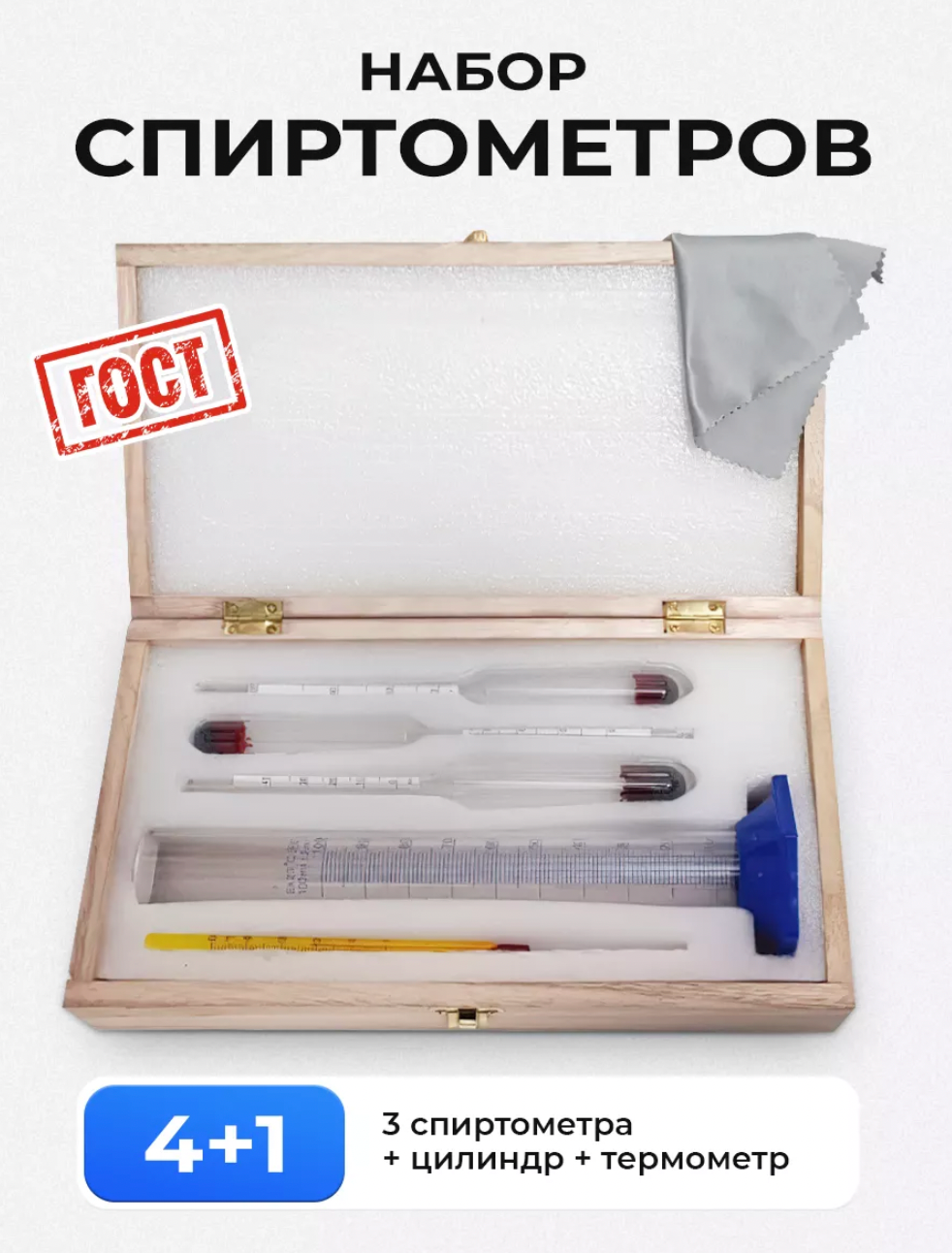 Набор спиртометров с мерным цилиндром стекло, дерево ГОСТ информация: