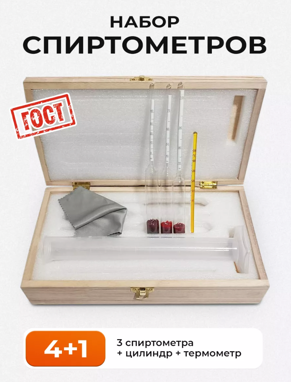 Набор спиртометров с мерным цилиндром полипропилен, дерево ГОСТ информация: