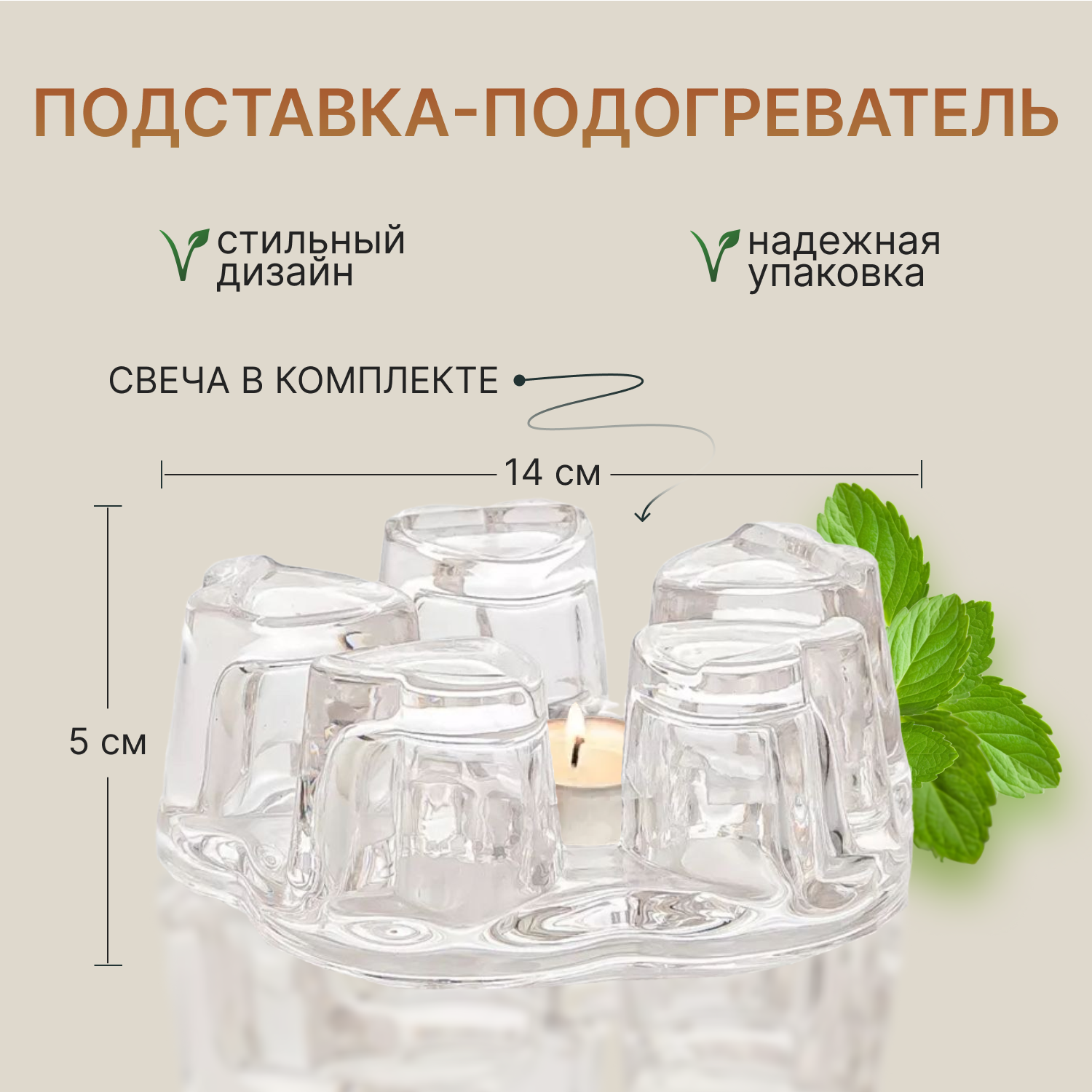 Заварочный чайник с бамбуковой крышкой и подставкой из стекла + свеча информация: