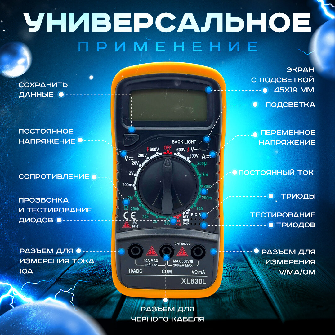 Мультиметр цифровой 830L, тестер с звуковой прозвонкой и подсветкой информация: