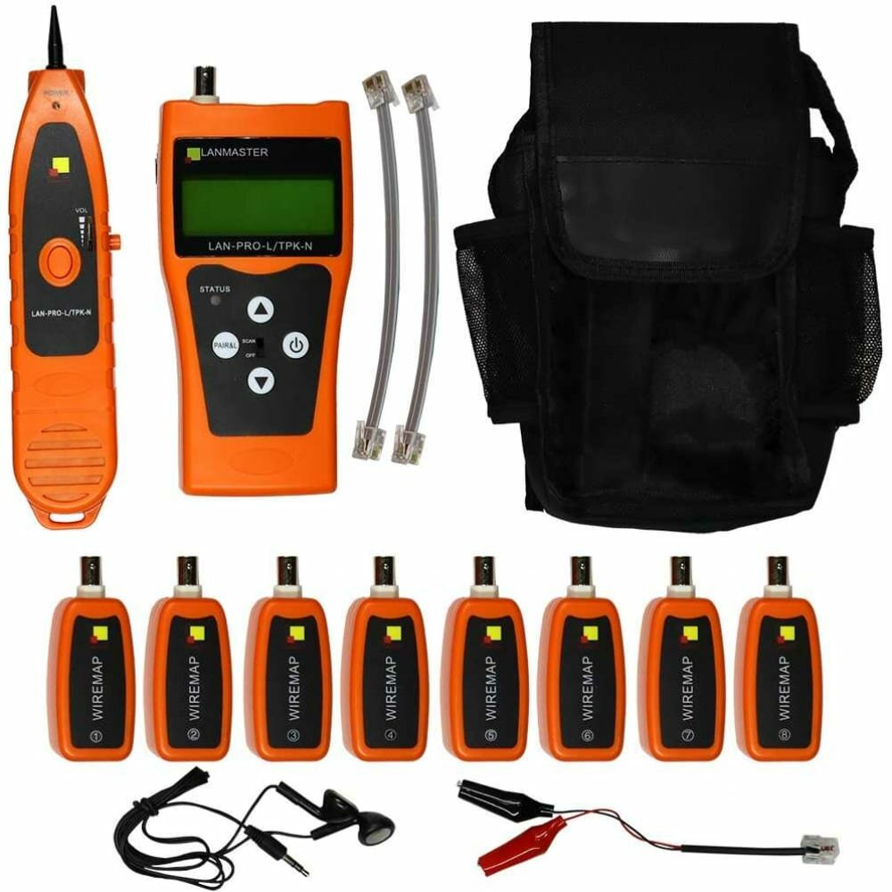 10 цен на LANMASTER Кабельный тестер с измерением длины и трассировкой кабельных линий, 8 ответных частей LAN-PRO-L/TPK-N-8R