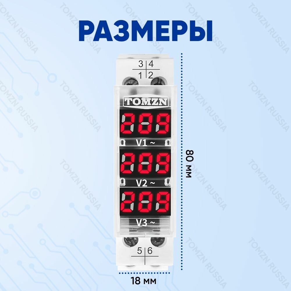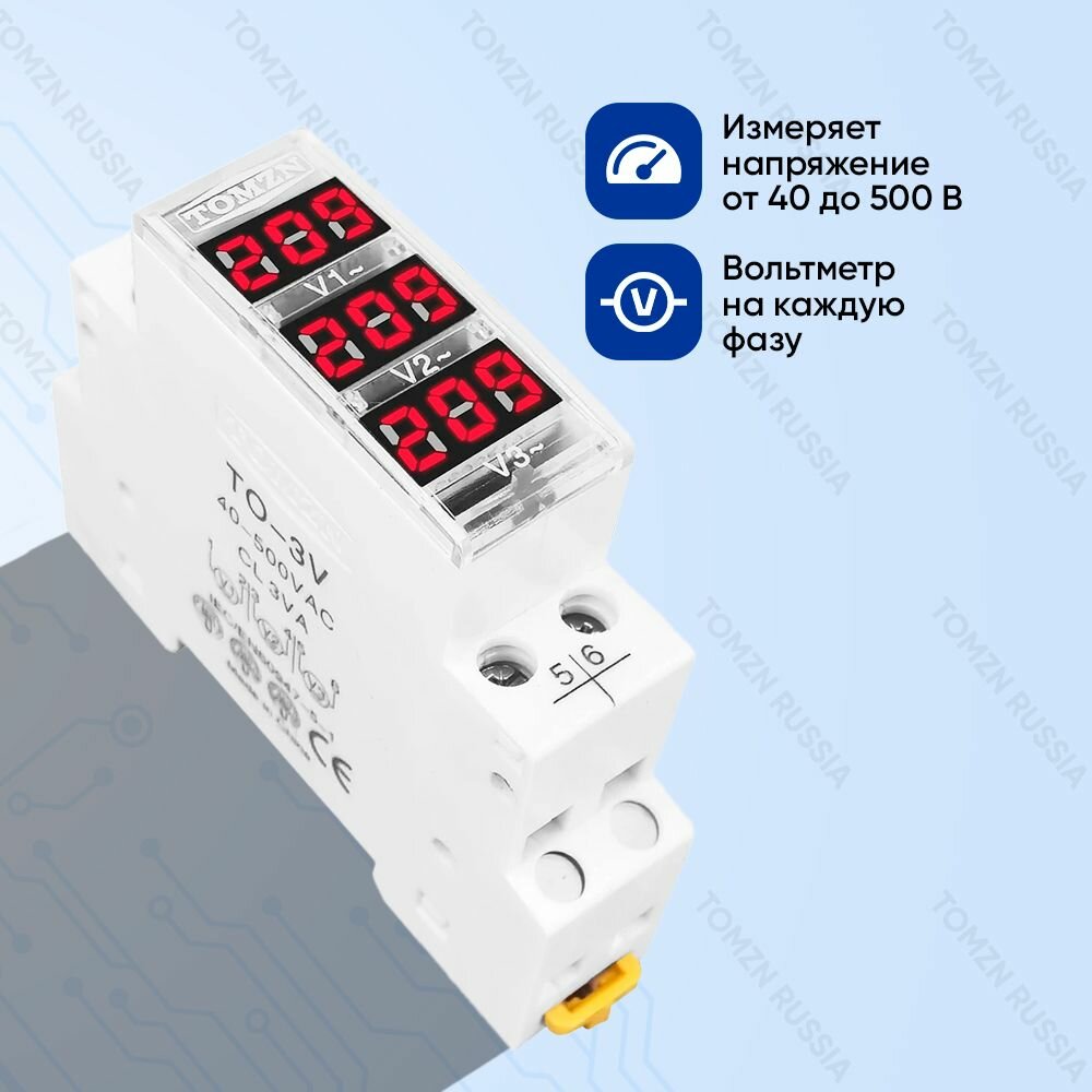 Вольтметр на DIN рейку TOMZN TO-3V 40-500 В / Цифровой вольтметр с внешним датчиком для переменного тока информация: