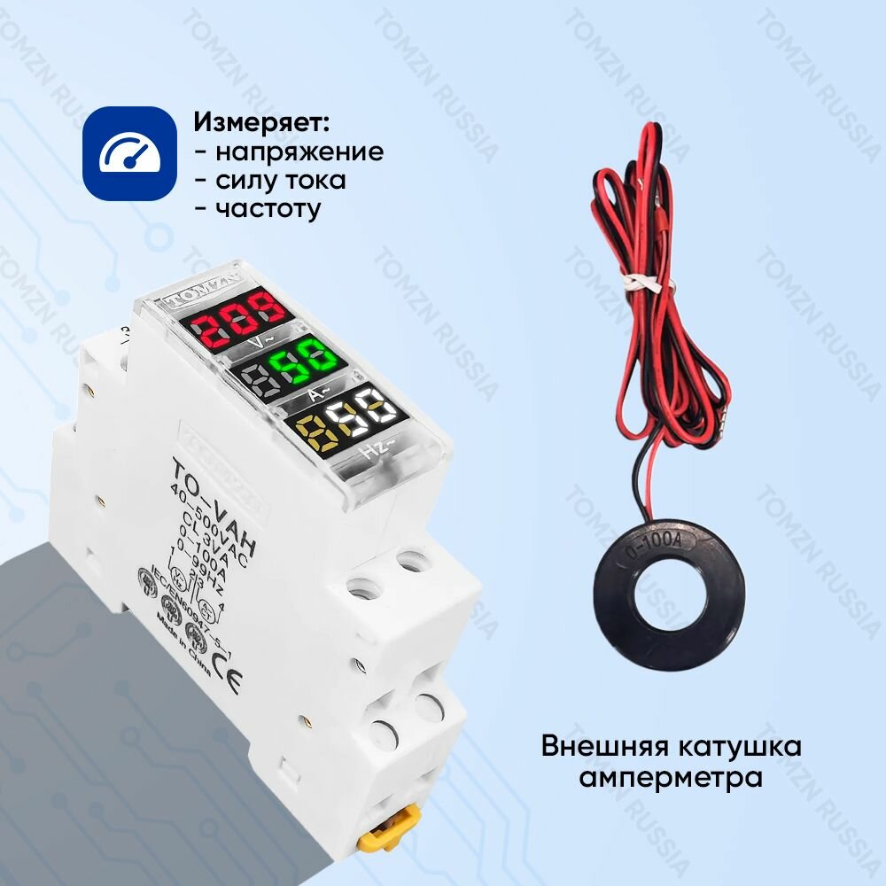 Вольтметр и амперметр на DIN рейку TOMZN TO-VAH 40-500 В / Цифровой мультиметр с внешним датчиком / Монитор переменного тока до 100 Ампер информация: