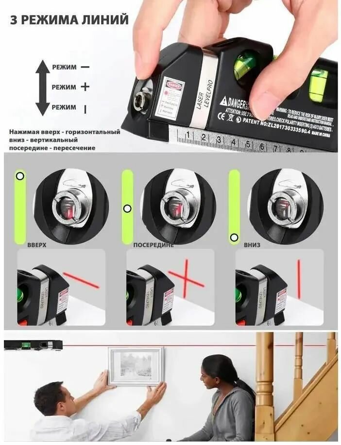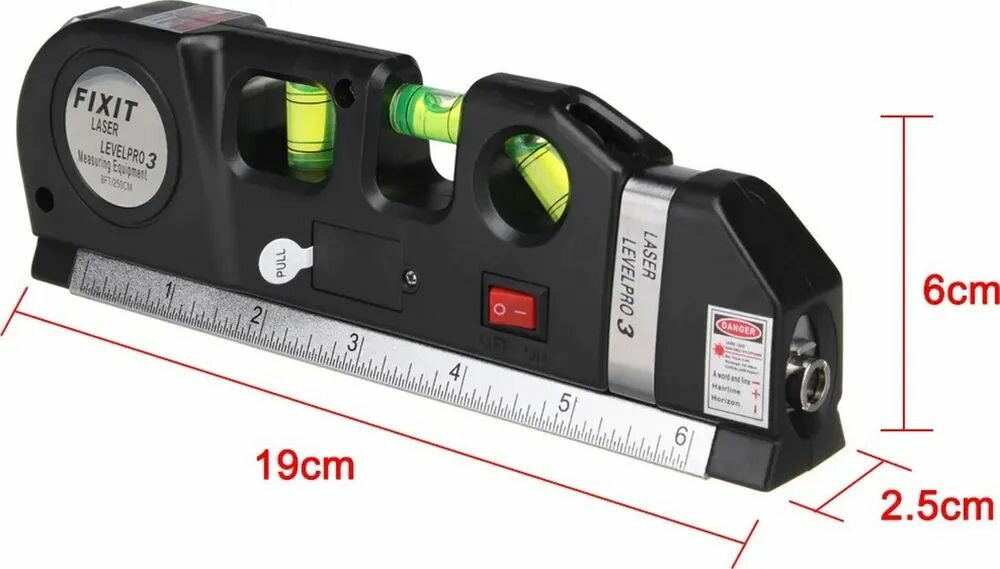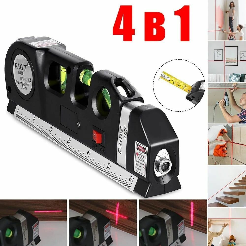 Отзывы на Строительный лазерный уровень 4в1 (многофункциональный) с линейкой и рулеткой 2.5м, нивелир