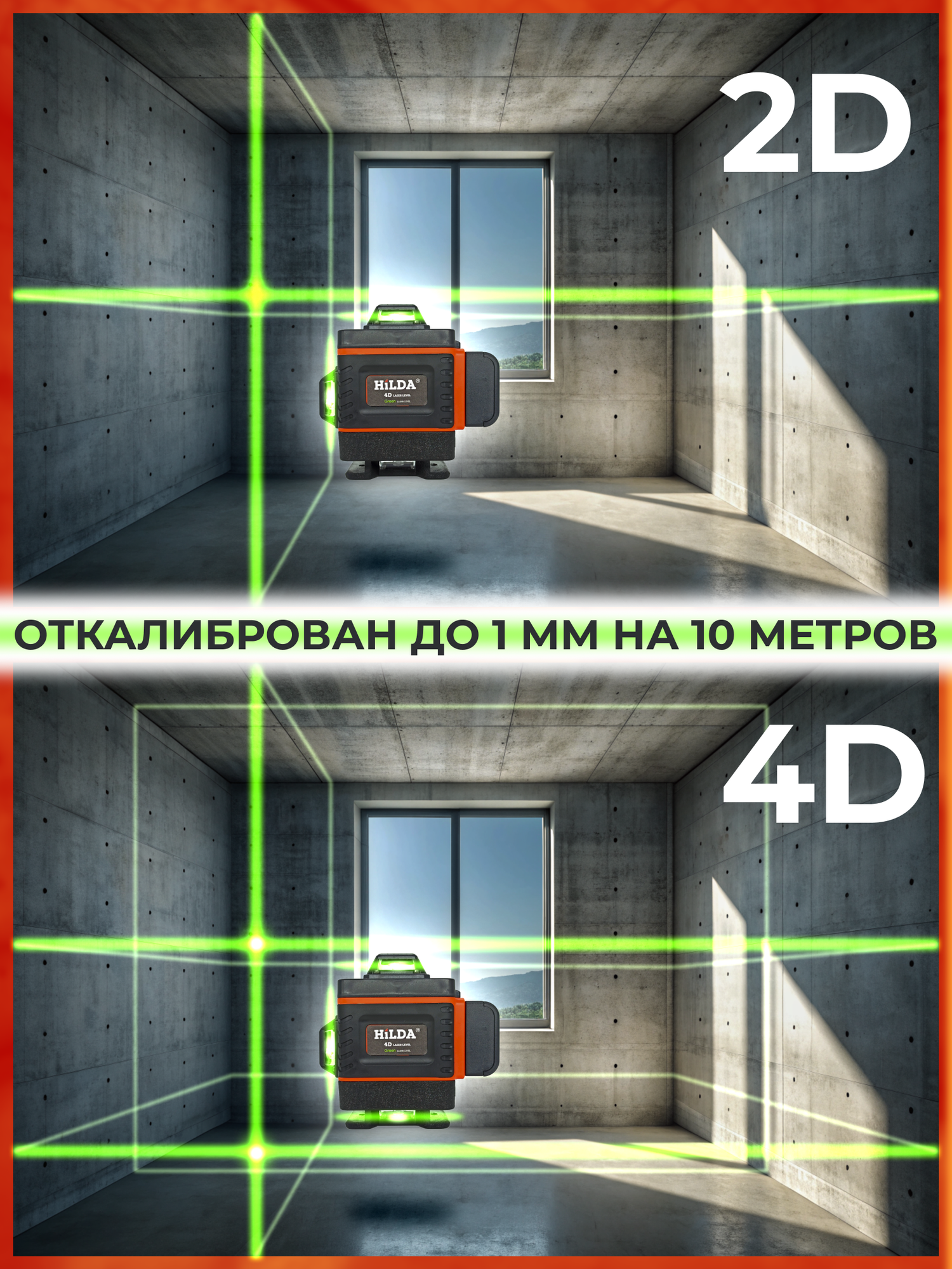 Лазерный уровень нивелир HILDA 4D, 16 линий 2 аккумулятора информация: