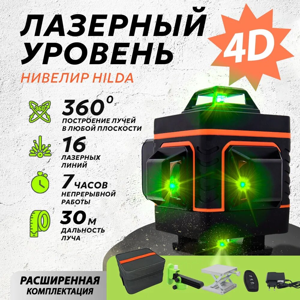 Лазерный уровень Hilda 16 линий 360 4D информация:
