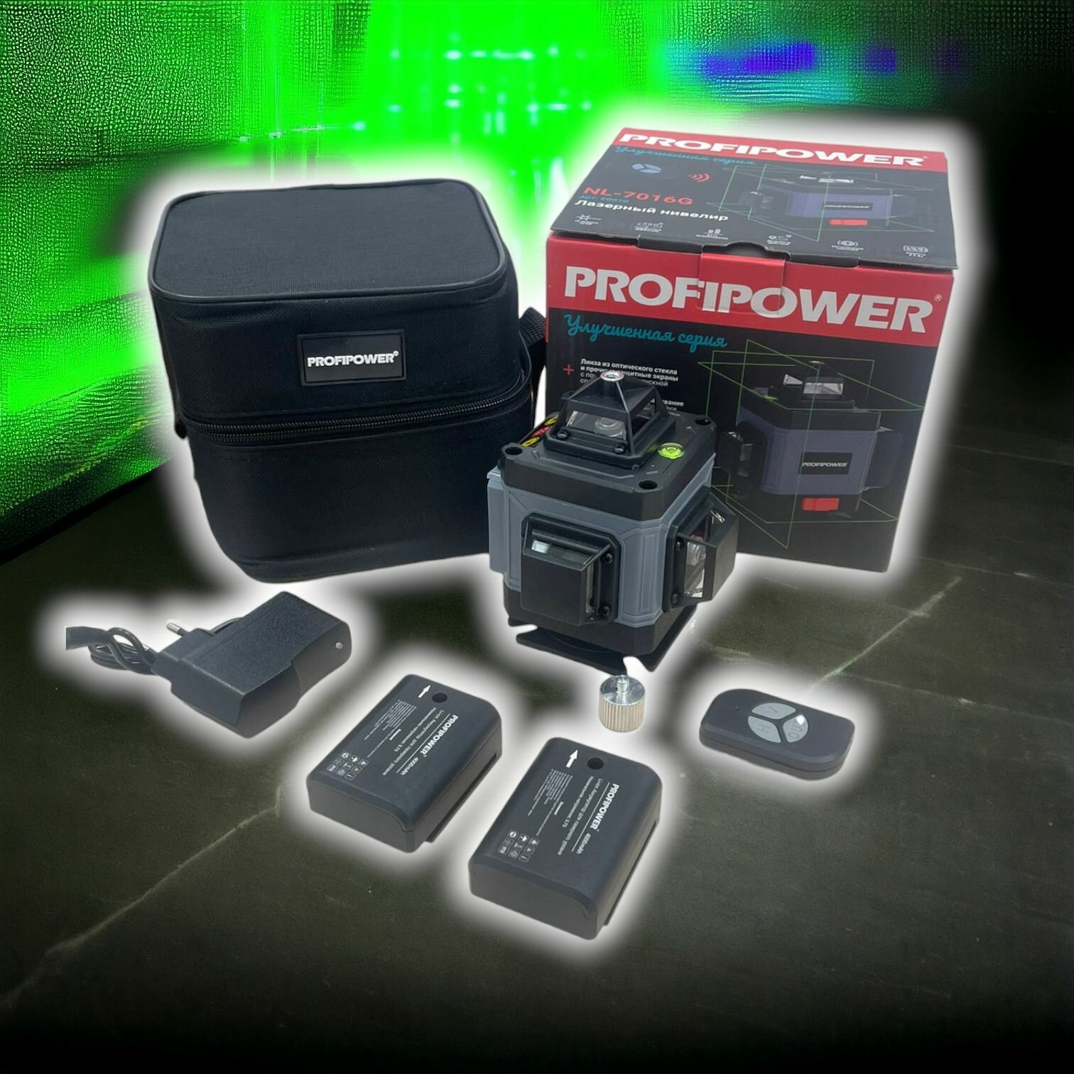 Лазерный нивелир ProfiPower NL-7016G (16 лучей, лазер - зеленый, Li-ion - 1шт., пульт ДУ, кейс)