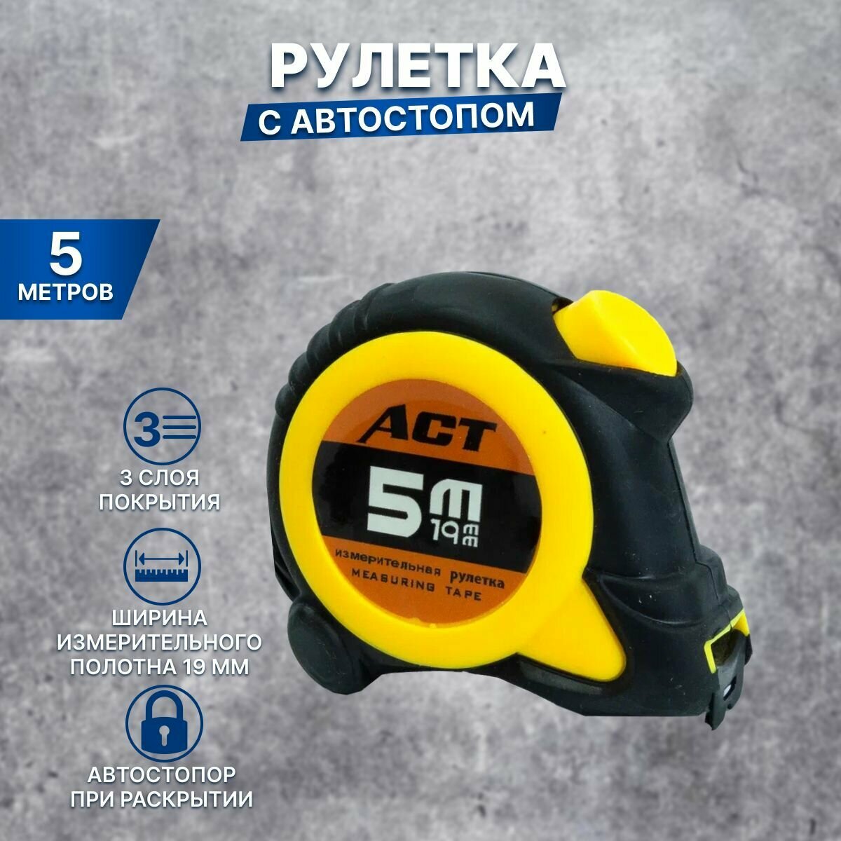 Рулетка *мастер* 5м (Прорезиненная, противоударная 19мм) информация: