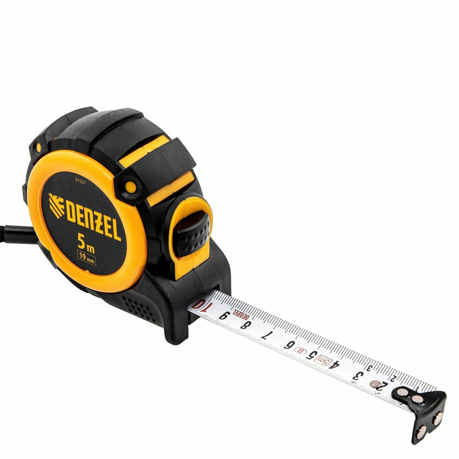 Рулетка Denzel 5м х 25мм обрезиненный корпус, автоматическая фиксация 31552