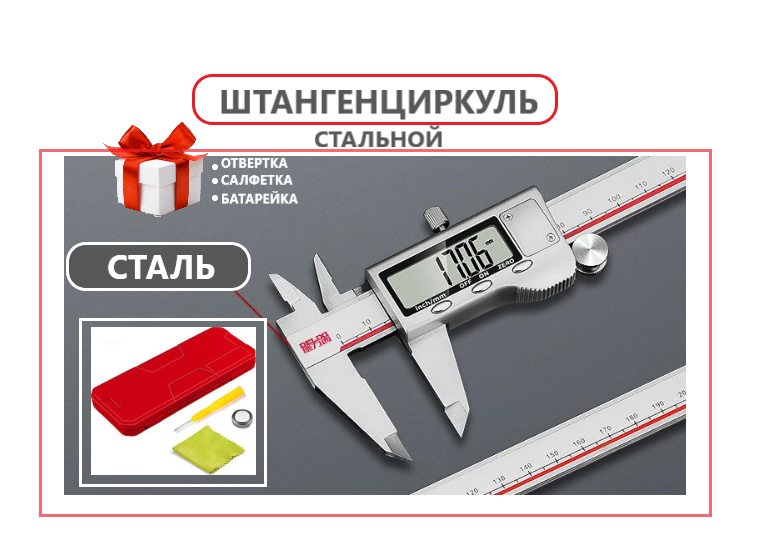 Отзывы на Электронный цифровой штангенциркуль, 6 дюймов, 150 мм / ЖК-экран / Нержавеющая сталь /Точность 0.01 мм