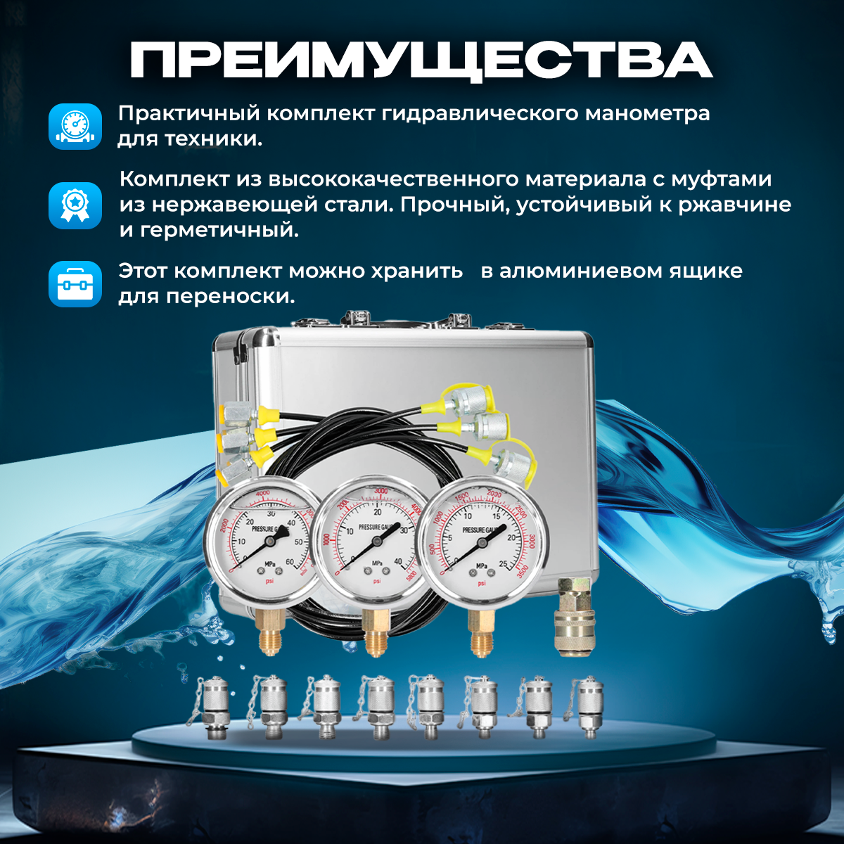 Комплект гидравлического манометра Manos, 9 муфт, 3 манометра информация:
