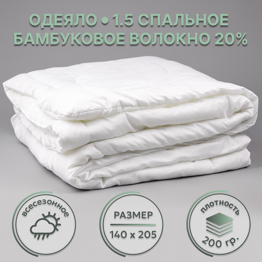 EZZY Уютный текстиль Одеяло 1.5-спальное 140х205см с бамбуковым волокном белое информация: