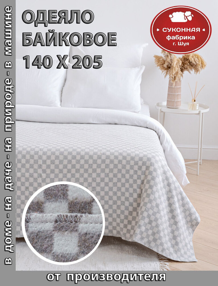 10 цен на Одеяло байковое "Клетка" серое. 140х205