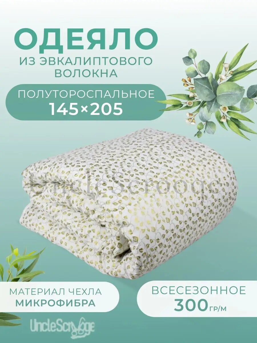Одеяло 1,5 спальное, облегченное, гипоаллергенное, 145x205, эвкалипт