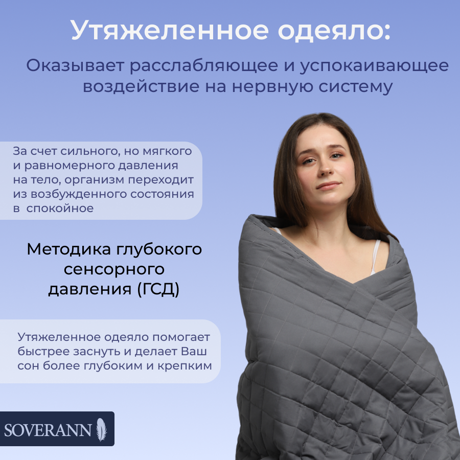 Утяжеленное одеяло для сна SOVERANN 1.5 спальное, 152 х 203 см, вес 6.8 кг информация:
