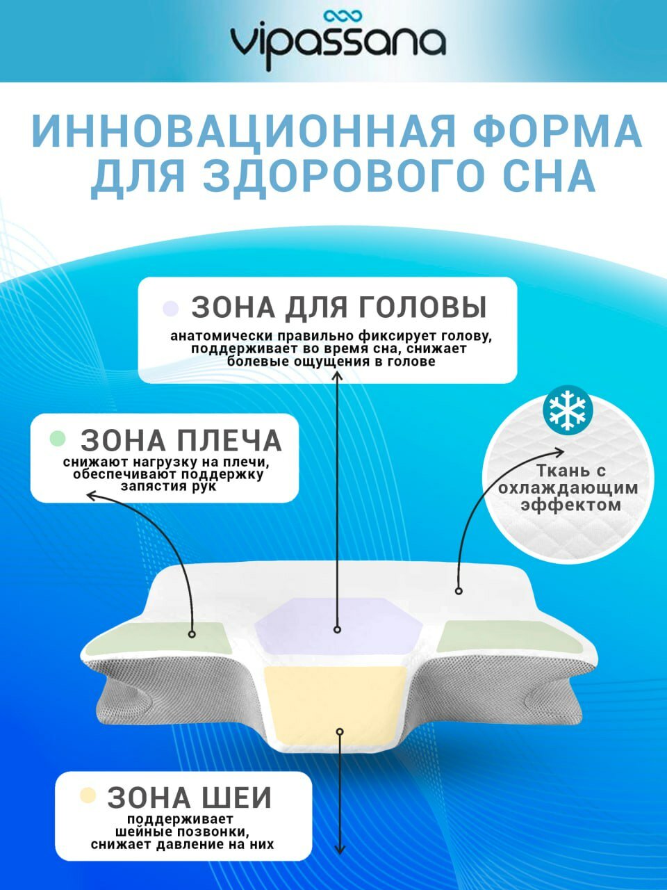 Подушка ортопедическая анатомическая с эффектом памяти VIPASSANA информация: