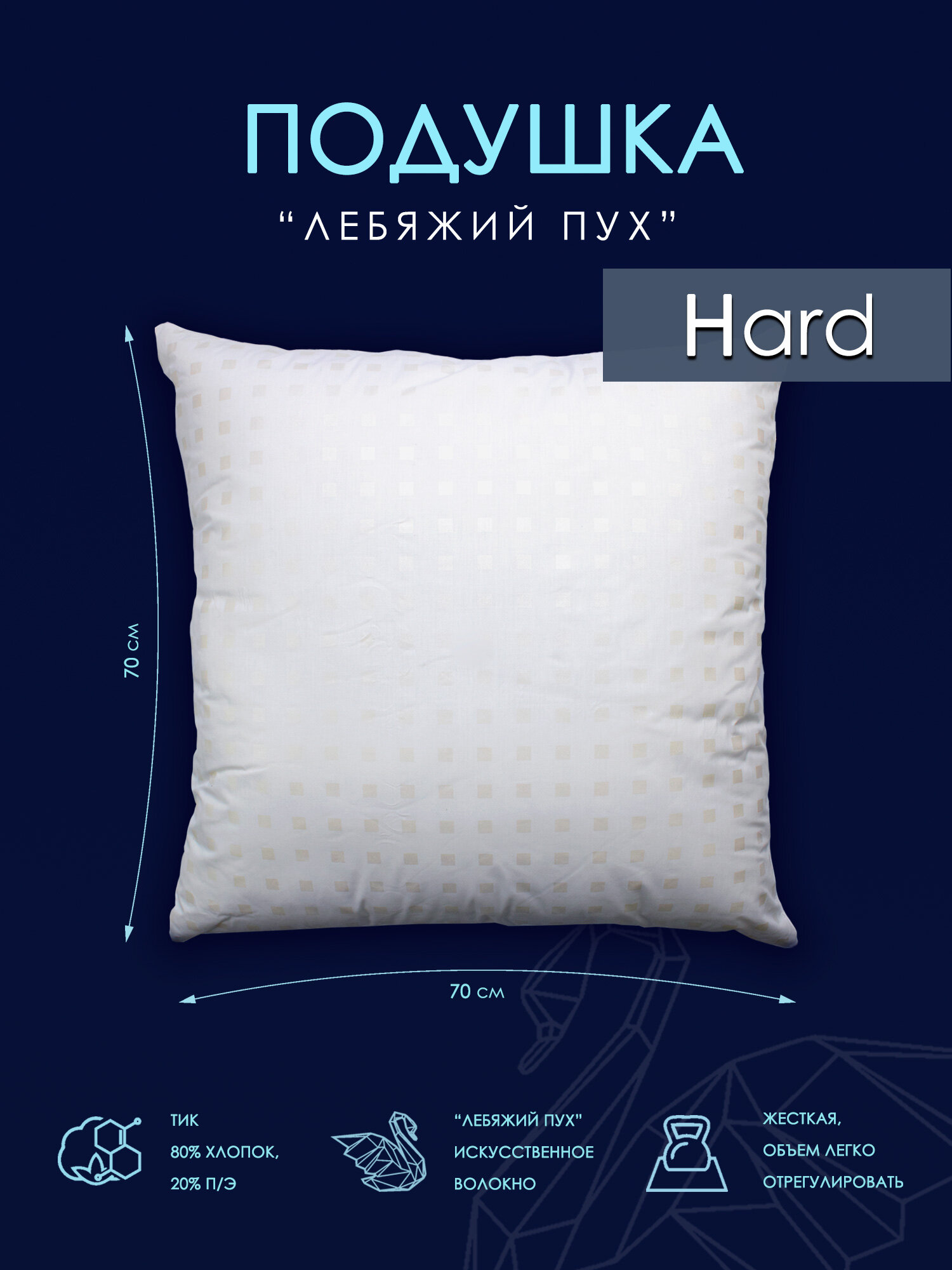 Подушка лебяжий пух 70х70 для мужчин HARD Хлопковый Мир подушка в тике на молнии информация: