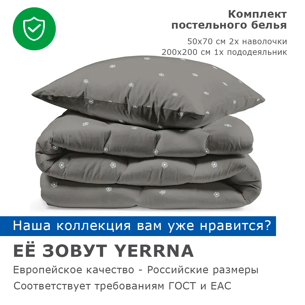 Комплект постельного белья 1 спальный YERRNA, наволочка 50х70 1шт, перкаль, серый, с2081шв/211912 1 408 ₽