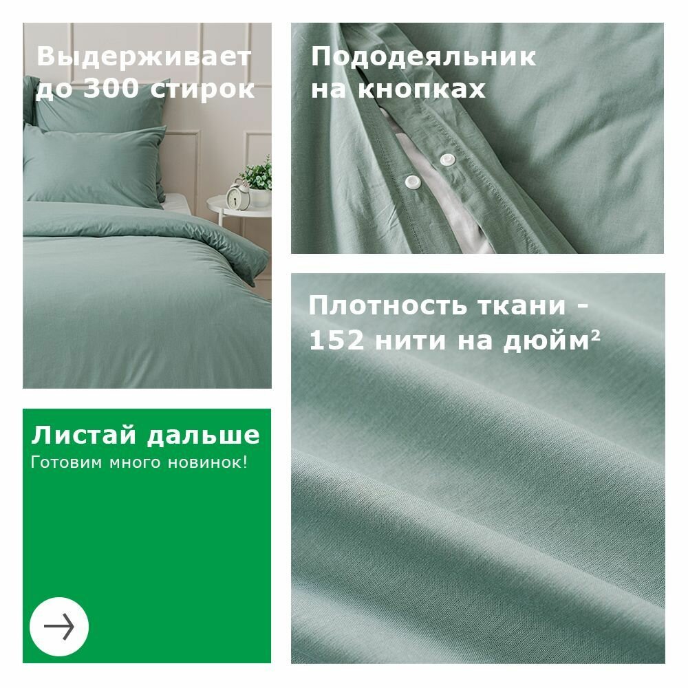 Отзывы на Комплект постельного белья, 2 спальный YERRNA, наволочки 50х70 2шт, перкаль, зеленый, с2082шв/18460