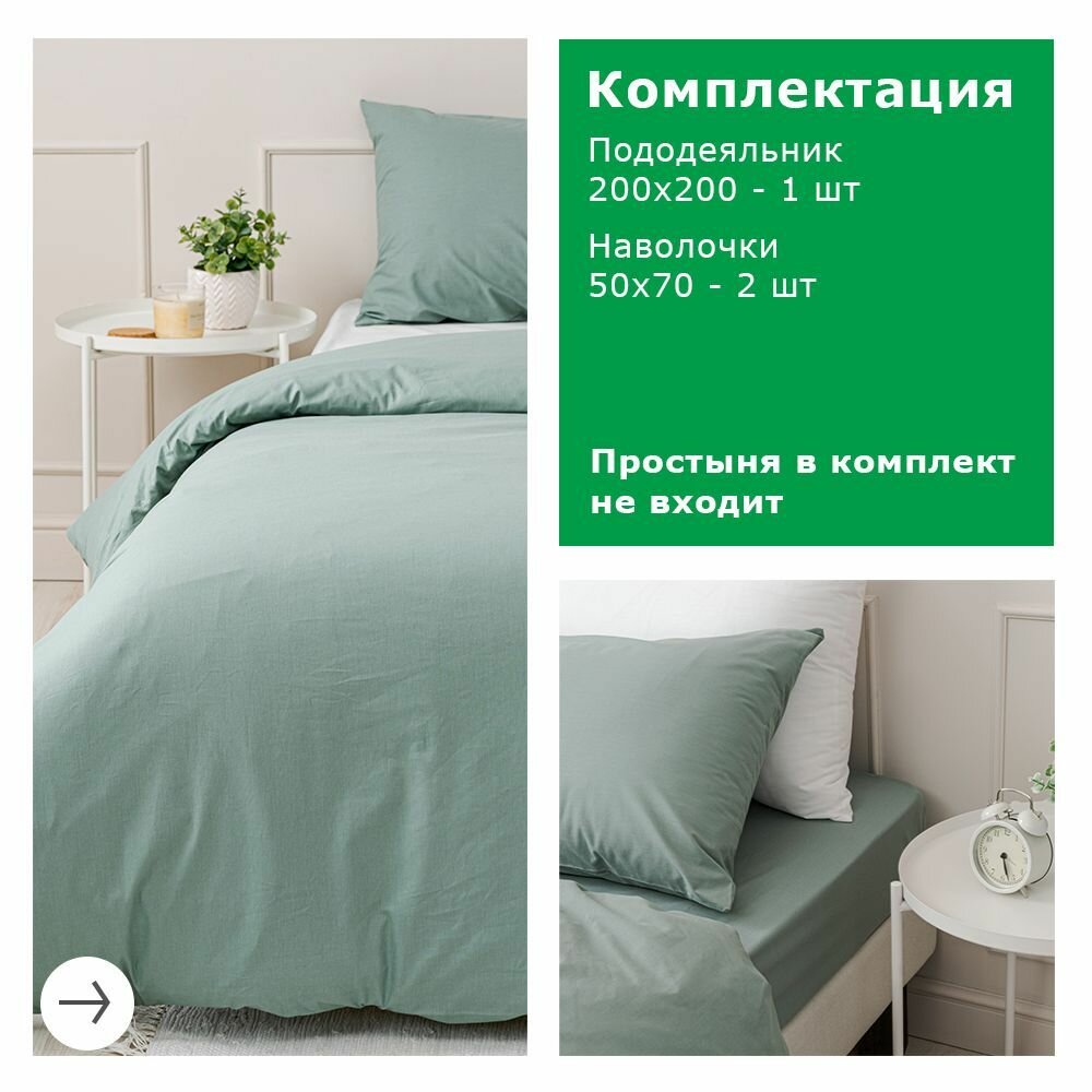 Комплект постельного белья, 2 спальный YERRNA, наволочки 50х70 2шт, перкаль, зеленый, с2082шв/18460 информация: