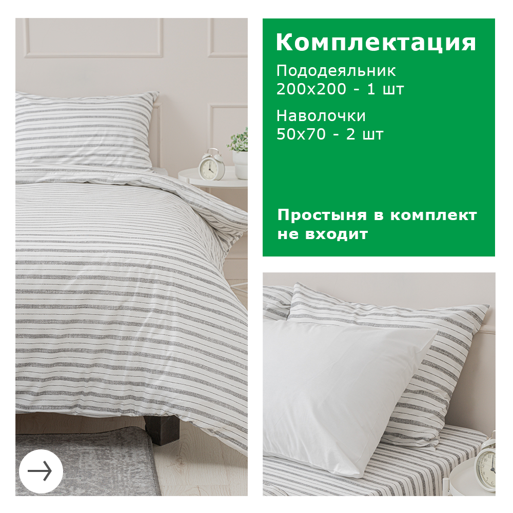 Комплект постельного белья, 2 спальный YERRNA, наволочки 50х70 2шт, перкаль, серый, с2082шв/211912 1 391 ₽