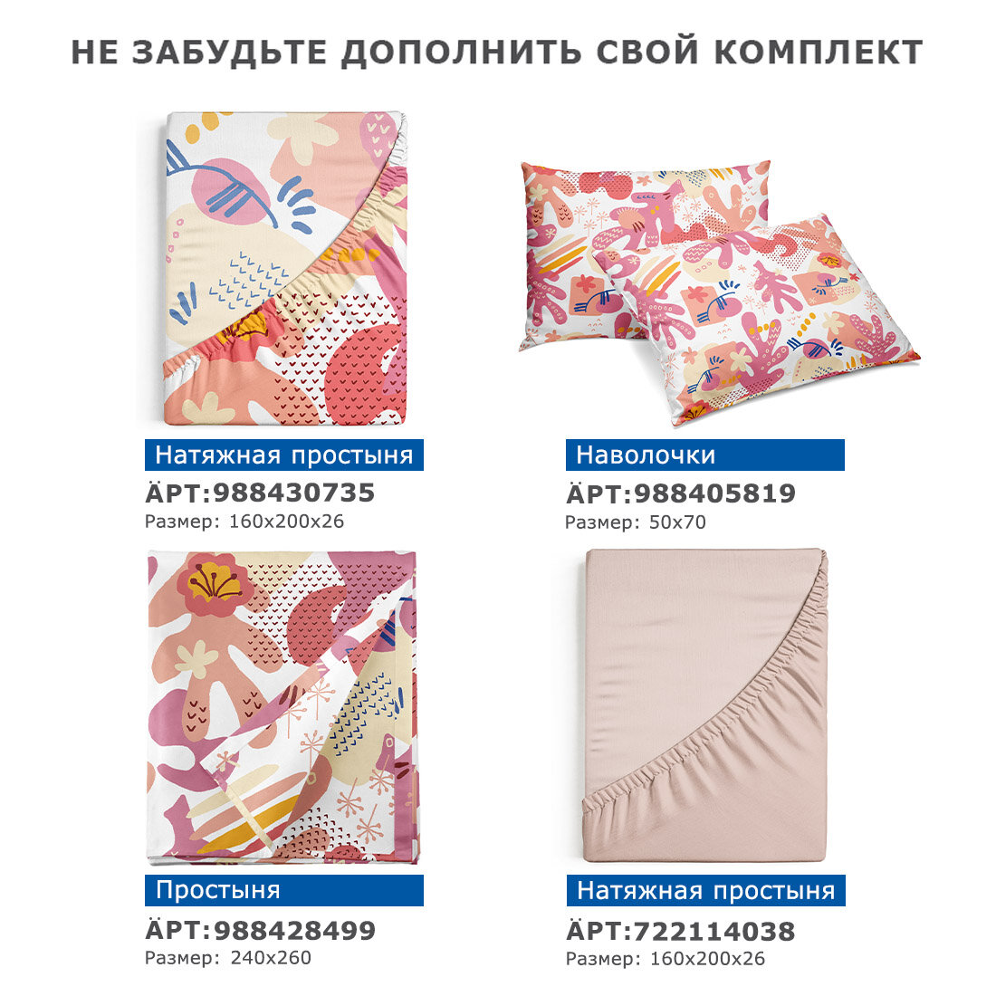 Комплект постельного белья 1 спальный YERRNA, наволочка 50х70 1шт, перкаль, разноцветный, с2081шв/97512 1 487 ₽